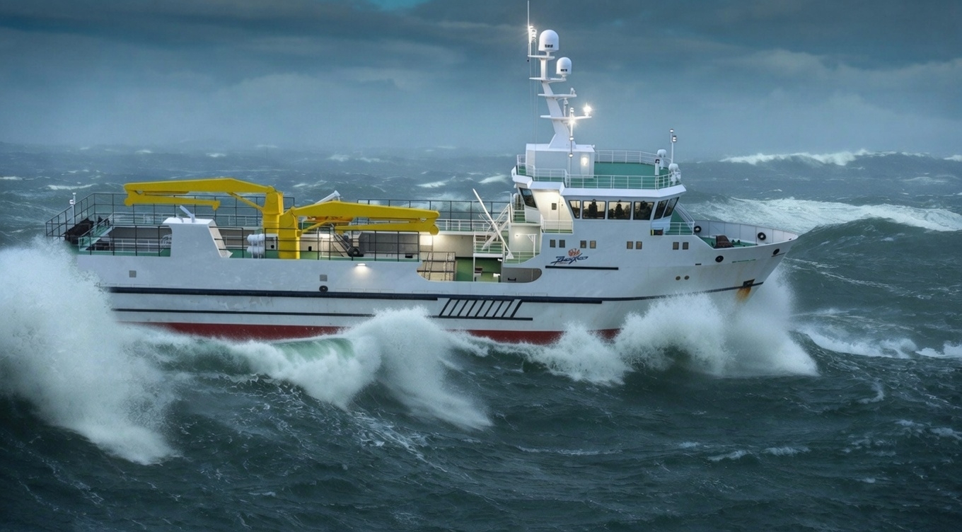 Судно предназначено для промысла краба в водных бассейнах Тихого океана с прилегающими к нему неарктическими морями, соответствующих ледовому классу Ice2. Также судно должно сортировать и транспортировать живого краба в Дальневосточном рыбохозяйственном бассейне: в акваториях северо-восточной и северо-западной частей Тихого океана. Визуализация Alex Swan Design (Алексей Лебедев Дизайн) для КБ "МИЦ СПб" Характеристики: Наибольшая длина краболова составит 61,35 м; длина между перпендикулярами — 54,5 м; ширина на миделе — 13 м; осадка по КВЛ — 5,5 м; высота борта до верхней палубы — 8 м; экипаж — 26 человек; мощность главного двигателя — 2100 кВт; скорость — не менее 12 узлов; количество танков — 6 шт.; объем воды в RWS-танках — 550 куб. м. Проект судна разрабатывается на класс КМ ICE2 (hull; machinery) AUT2 (REF) Fishing vessel.